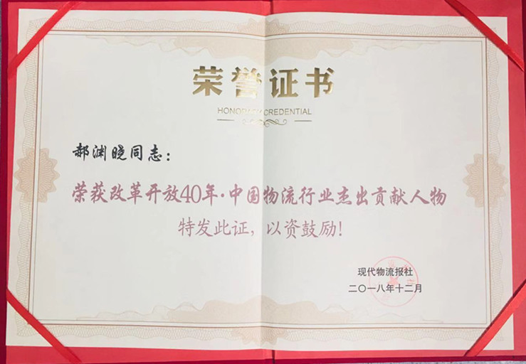 2018年12月21日,由现代物流报社、中国物流与采购联合会联合主办的“改革开放40年:新时代智慧物流发展峰会”在西安举行。来自全国的物流行业的专家、企业家300多人,共同分享改革开放40年成果,探讨新时代智慧物流的发展方向。同时举行了“致敬改革开放40年中国物流行业杰出贡献奖”的颁奖,赌博平台 郝渊晓教授由于长期致力于物流的教学与研究,为政府进行多项规划及课题研究咨询,被授予“改革开放40年 中国物流行业杰出贡献人物”奖。
