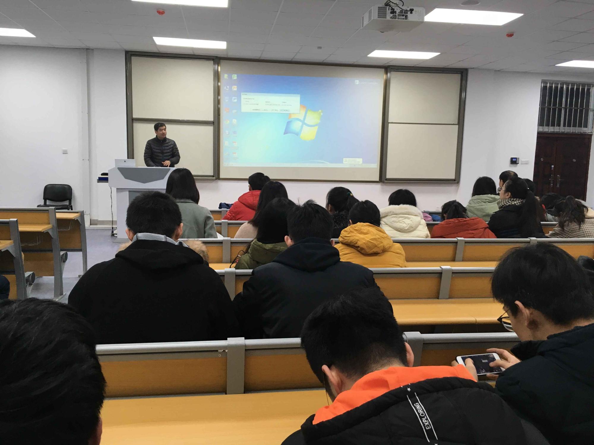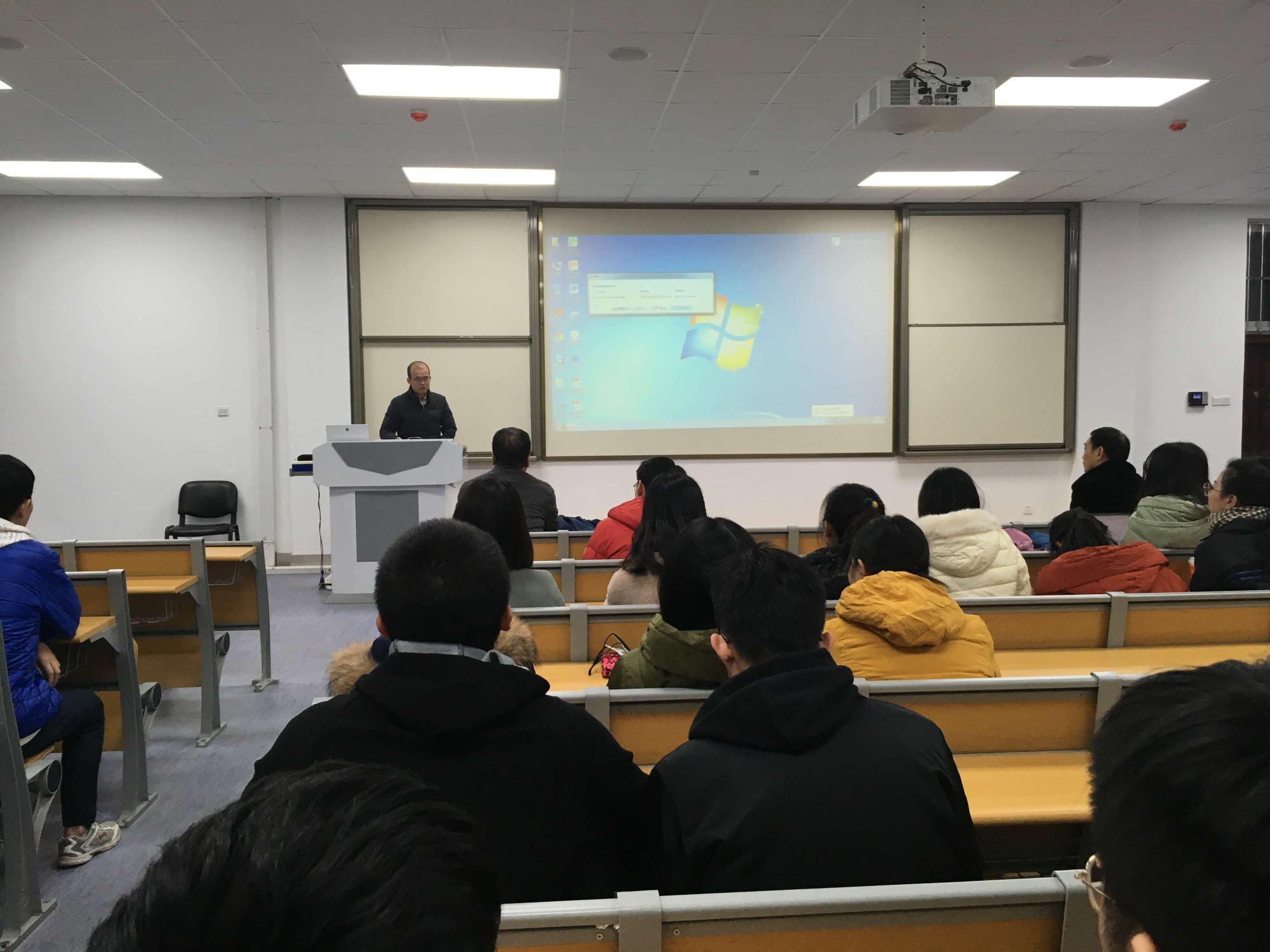 1月11日晚,学院在东配二阶梯教室召开全院研究生大会。总结学院学生管理和教学工作,布置寒假安全工作。院党委副书记周建伦、副院长温军及辅导员王平老师出席会议。