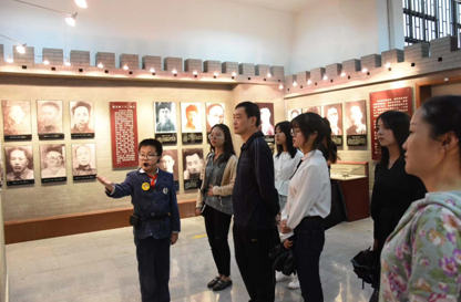 接下来,大家在两位少先队员的讲解和带领下参观了纪念馆英烈厅,在中国革命历史中涌现的无数英雄事迹面前,大家无不感到深深的震撼和动容。其中有辛亥革命先驱井勿幕将军,抗日战争中民族英雄刘桂伍、宣侠父,解放战争中爱国民主人士杜斌拯、战斗英雄秦富德,抗美援朝中“八勇士”之一的候天佑,社会主义建设时期雷锋式的英雄模范张华以及王周斌、祝选朋等一大批革命先烈。同学们在各个展柜和事迹介绍前驻足观看,并时常交流自己的想法,坚定了大家继续发扬不怕苦不怕累、坚持不懈、顽强拼搏精神的信念。
