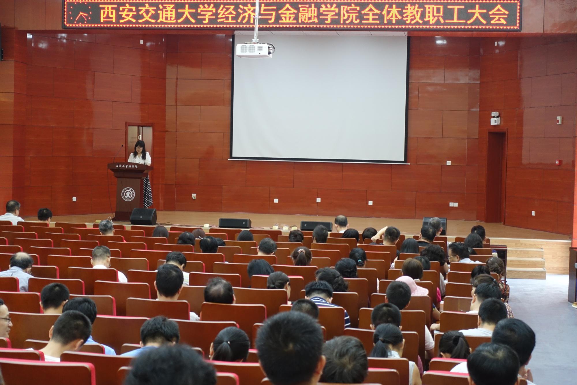 在财经校区东配三报告厅召开全院教职工大会,传达学习学校暑期工作会议精神,部署学院下一步工作,全体教职工出席大会。会议由党委副书记周建伦主持。
