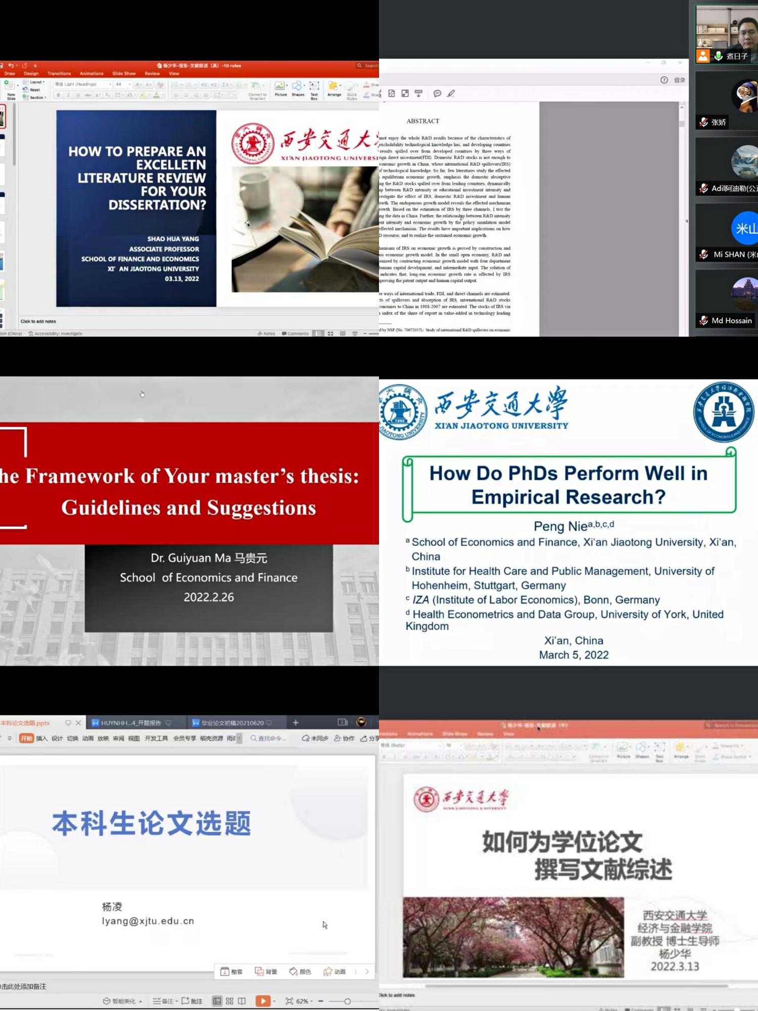 系列讲座从2月开始,至4月结束,历时7周,覆盖学院博士、硕士、本科三层面全体留学生,共作报告17场,其中包括6场英文博士论文讲座、6场英文硕士论文讲座以及5场中文本科论文讲座。