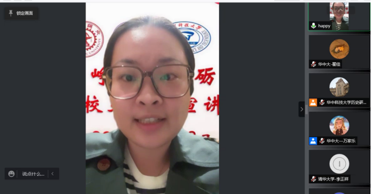 活动最后,华中科技大学人文学院学生工作办公室主任,党建专职辅导员宋海佩老师做总结发言。宋海佩老师代表华中科技大学人文学院对活动的成功举办表示肯定,对各高校师生的参与组织和宣讲付出表示了感谢,同时也提出了希望加强各高校支部联系,继续深化合作,创新党建活动形式等建议。