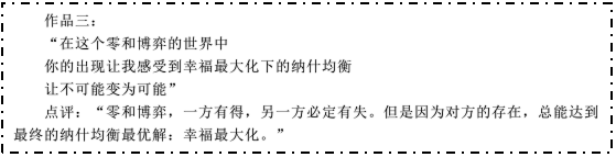博文经济学社举办了三行情书创作大赛活动。本次活动以“经笺三行,墨浅情长”为主题,要求结合所学学科理论、术语、模型、人物典故等,用不多于六十个字的三行诗句来表达对所钟爱的人、事、物的感情。