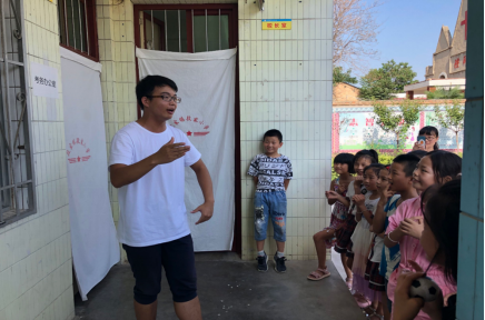 优秀作品1: 2019年7月,刘正同学在陕西省渭南市大荔县段家镇中心小学进行暑期支教活动,支教期间,刘正曾多次和同学们分享戏曲、曲艺等传统文化知识,用青春岁月传承传统艺术,让文化自信在孩子们的心中留下最初的萌芽。所选照片是他在课间休息时为同学们演唱京剧《珠帘寨》选段。