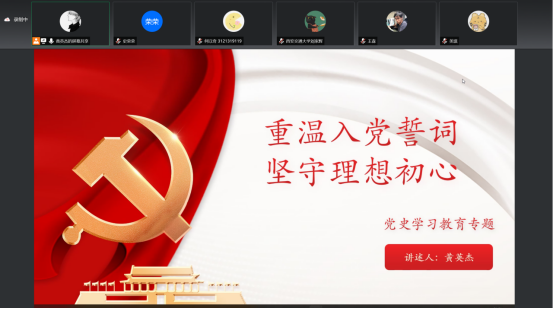 2021级金融专硕党支部以“重温入党誓词,坚守理想初心”为主题开展“七一”主题党日活动。会议由党支部副书记黄英杰主持,全体党员和入党积极分子参加。