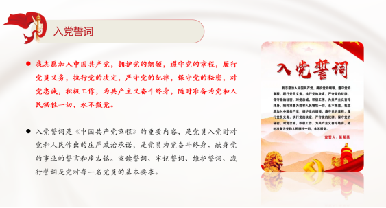 誓词在心,永葆初心。入党誓词作为党员对党和人民作出的庄严政治承诺,是其愿意奋斗和献身于共产主义事业的座右铭。黄英杰带领大家回顾了“入党誓词的前世今生”,让同学们感受到入党誓词的历久弥新。宣读誓词、牢记誓词、维护誓词、践行誓词是党对每一名党员的基本要求,面对鲜红的党旗,支部全体党员重温入党誓词,字字掷地有声,句句铿锵有力,真挚地表达了对党忠诚、为党奋斗终身的决心和愿望。