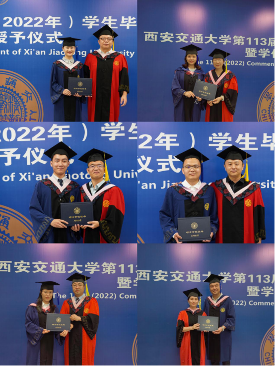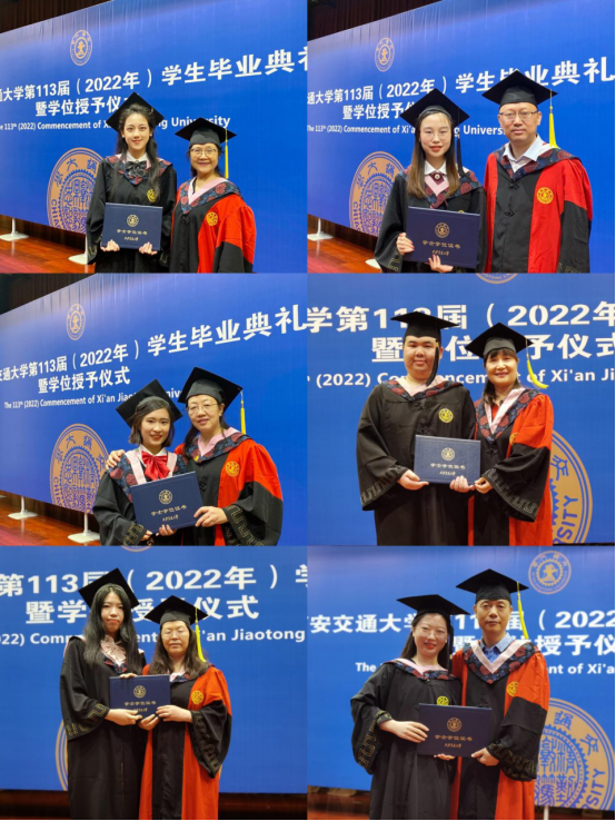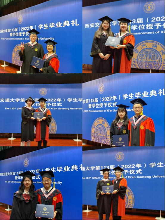 各位教授代表为到场的毕业生逐一拨穗,颁授学位证书,毕业生向老师们一一致谢,合影留念,现场气氛温馨、热烈。