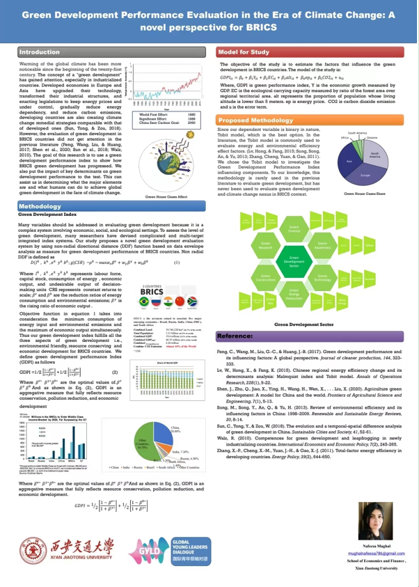 温军教授指导的19级巴基斯坦籍博士留学生Nafeesa Mughal受邀参加,所作报告Green Development Performance Evaluation in the Era of Climate Change: A novel perspective for BRICS入选了2022年“全球发展共同体”十佳提案。