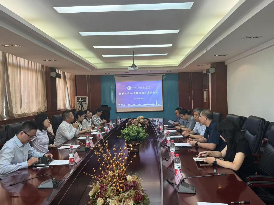 周建伦代表学院对朱兴副行长一行的来访表示热烈欢迎。他表示,江苏银行与学院有多层次紧密的联系,在推动产教融合、发挥金融机构优势等方面进行了深入研讨,并希望在后续工作中,能够加强双方合作,不断探究校企融合新路径、新形式。同时,也希望江苏银行的领导能够常来交大交流,将宝贵的工作经验分享给同学们。
