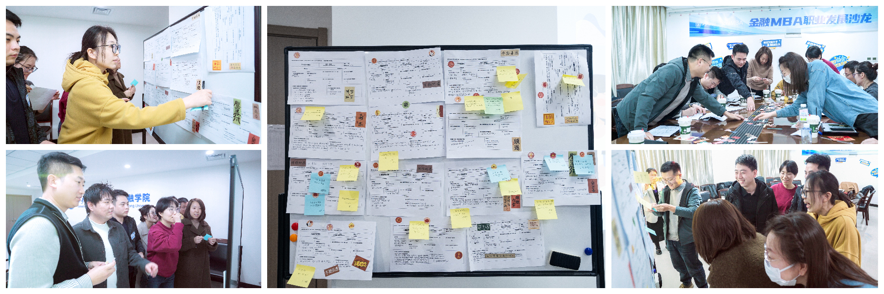 紧接着,在“小组催化”与“人生可能性集市”环节,同学们以小组为单位深度交流各自的“人生副本”,相互提问、反馈,并促成资源链接。有同学从工程师严谨的逻辑中看到转型产品经理的潜力,也有人发掘出跨行业合作与副业发展的新机遇。在不同背景与职业阶段的思维激烈碰撞中,同学们不仅拓宽了职业视野,更收获了来自同伴的真诚建议与资源支持。