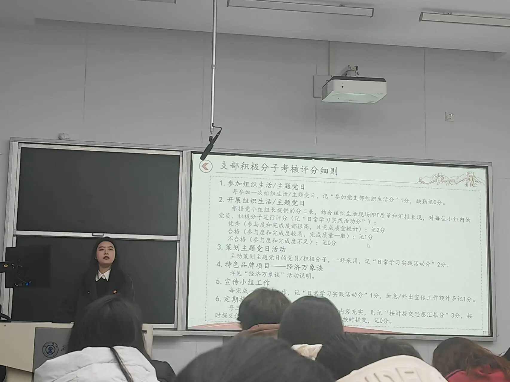 崇实书院师生联合第二党支部入党积极分子培养教育规定》。在《崇实书院入党积极分子量化考核内容及标准》的基础上,重点介绍了支部积极分子考核评分细则,详细说明“参加组织生活”“日常学习实践”“定期提交思想汇报”等量化评分标准,同时强调,量化评分是手段而非最终目标,希望大家不要唯分数论,要在日常学习生活中加强思想理论学习,规范自身行为举止,积极向党组织靠拢。