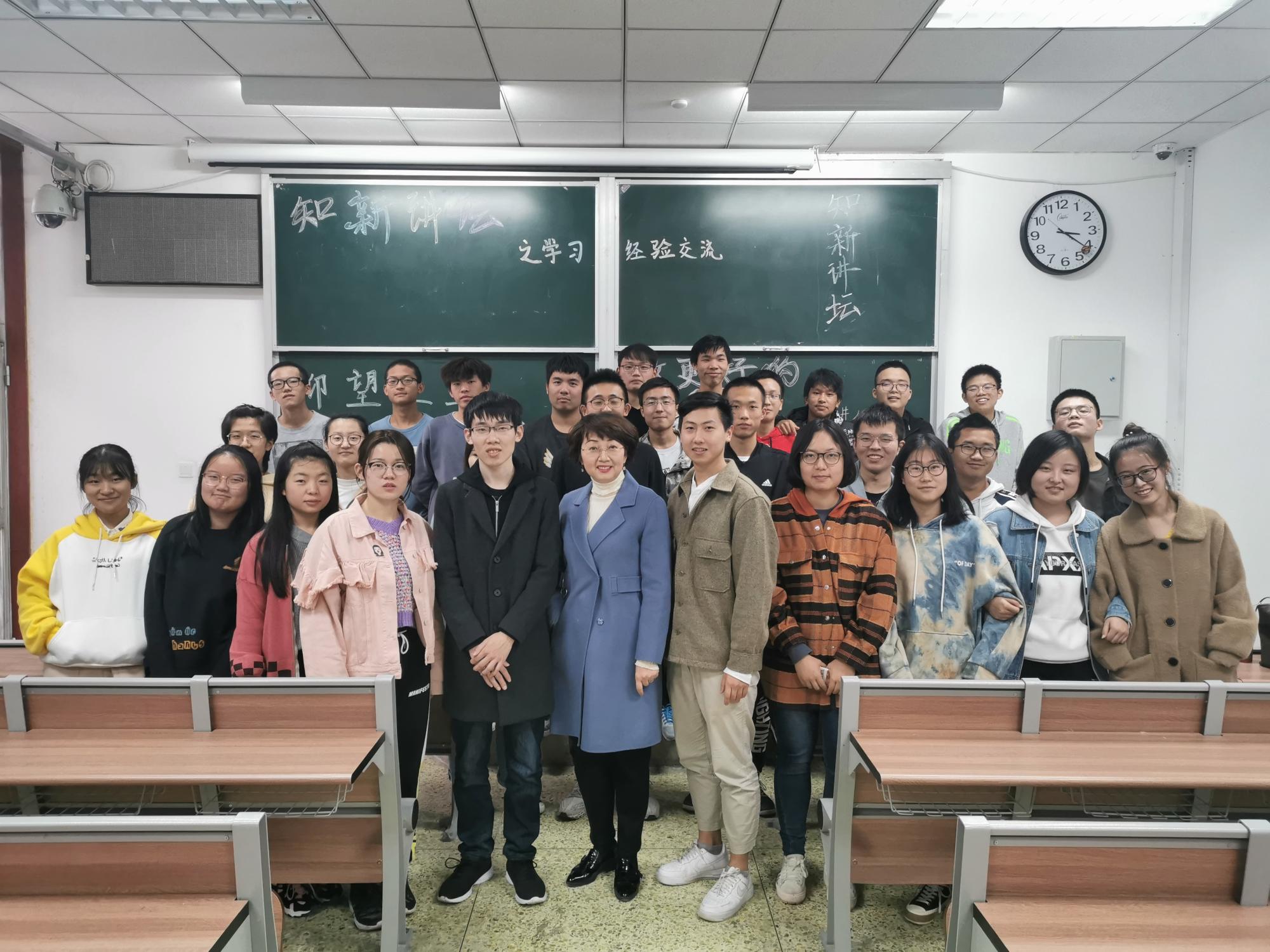 最后,贾小玫老师对两位主讲同学分享的内容进行了补充,并给在座大一、大二的学生提出了一些学习及生活方面的建议。希望本次学习经验交流活动能使同学们有所收获,对自己的大学生活有一个新的认识和憧憬,更加热情地投入新阶段的学习中。