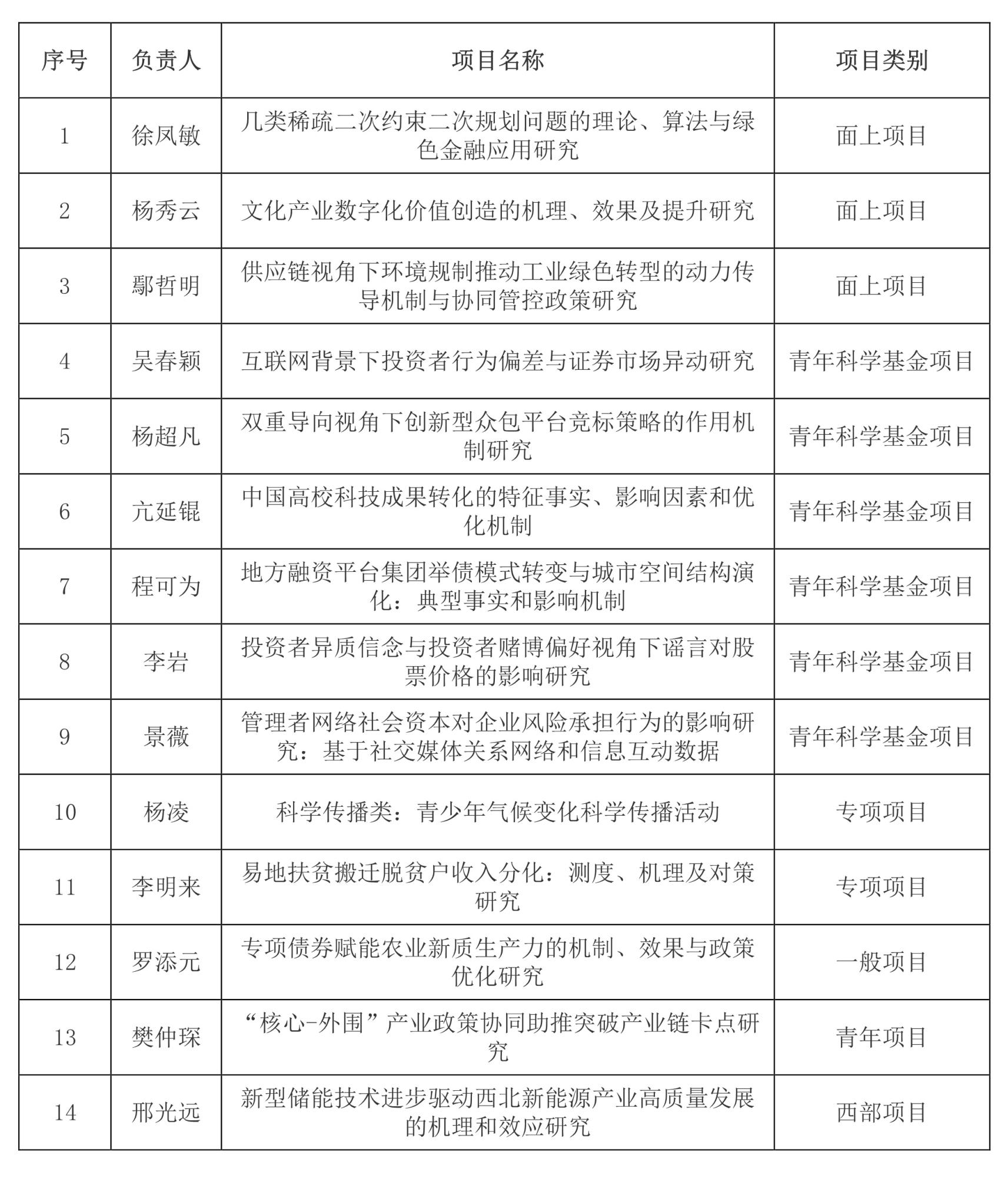 分别有11个项目获得国家自然科学基金项目资助立项,其中面上项目3项,青年项目6项,传播类专项项目1项,青年学生基础研究项目(博士研究生)1项;共有3个项目获得国家社会科学基金项目资助立项,其中青年项目1项,一般项目1项,西部项目1项。截至目前,学院2024年度累计获批国家级科研项目立项14项,同比国家自然科学基金项目数量及类型取得新突破。
