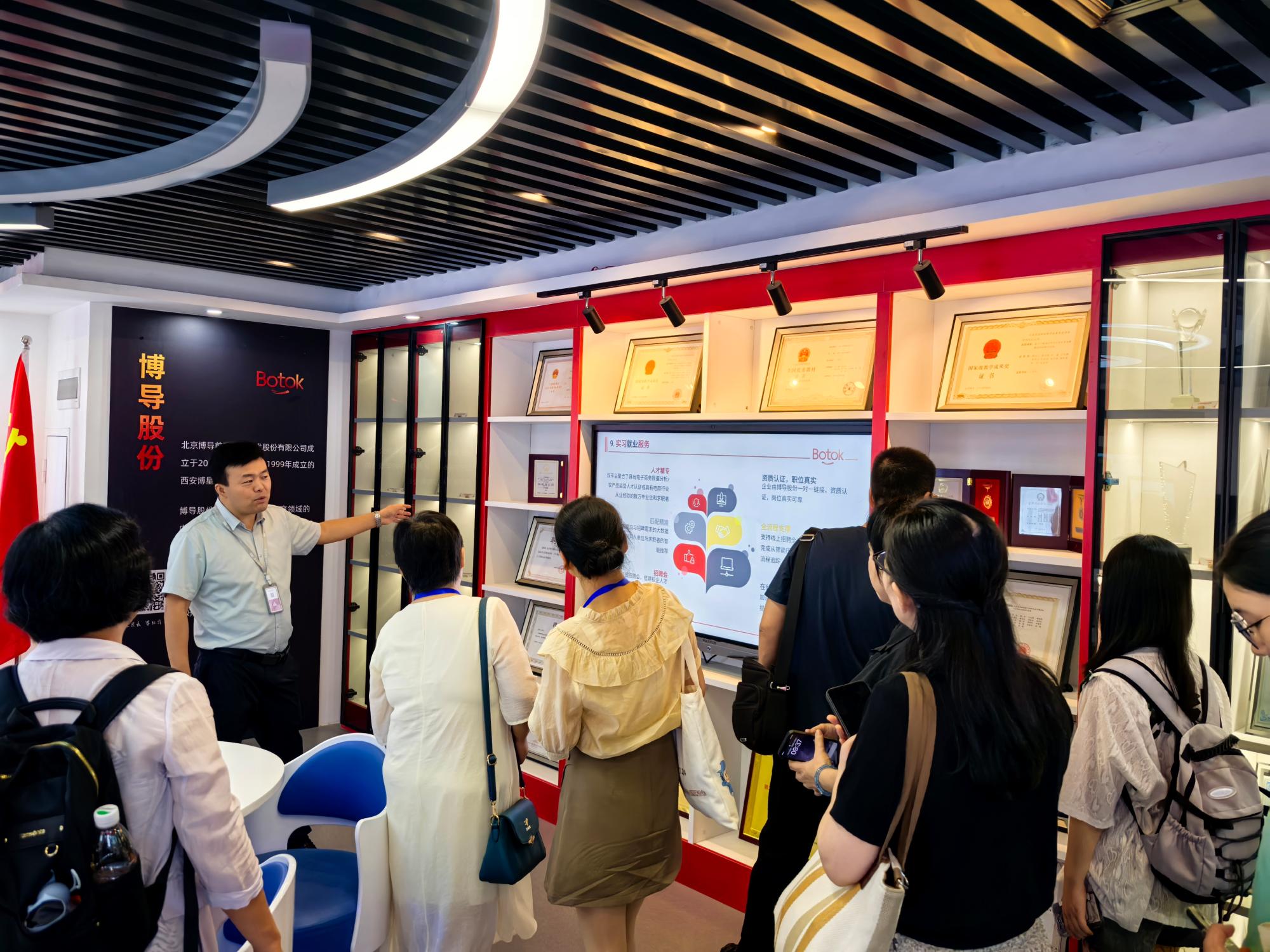 7月7日,参会师生赴北京博导前程信息技术股份有限公司参观学习。北京博导前程信息技术股份有限公司成立于2006年,其前身为1999年成立的西安博星科技有限公司。公司24年来专注于商科教育领域的内涵建设,面向全国各类院校及教育机构提供人才培养、教学科研、社会服务、国际合作等整体解决方案。参会师生与企业人员探讨了“如何进行产学合作协同育人”、“如何为推动数字商业人才培养贡献企业力量”等一系列与人才培养息息相关的话题。