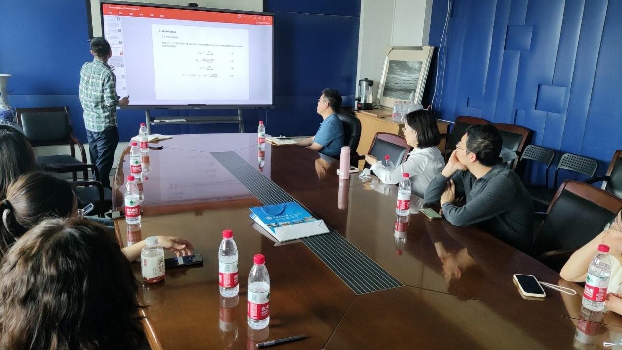 会议中,张昭老师对其工作论文“Sustainability of Public Pension System in aging China: An OLG Model Analysis”进行了汇报。该论文聚焦我国养老金账户的而持续性问题,利用包含个体效用最大化、企业利润最大化和政府预算平衡的世代交叠一般均衡(OLG-GE)模型,刻画了老龄化趋势下我国养老金账户的收支问题,结合中国实际的校准结果比较符合我国实际。进一步地,该论文通过养老保险缴费比例、生育率等维度的政策模拟探讨了养老保险账户收支及可能的缺口。