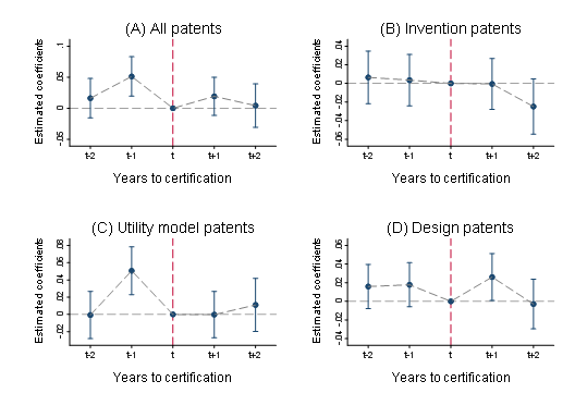 教师戴小勇与博士生王梦琪共同完成的一项研究,探究了企业对税收激励的策略性行为反应。聚焦于中国的高新技术企业认定政策,研究发现:企业为了获得高新技术企业认定带来的税收优惠,在认定前一期策略性地增加实用新型专利申请,但并未增加发明专利与外观设计专利申请。这主要是因为实用新型专利的申请周期较短、创新程度较低且能够满足高新技术认定对专利与知识产权的要求。然而,策略性专利并未伴随着真实的研发投入,也未带来实质性的创新产出,仅代表企业对税收激励的策略性反应。