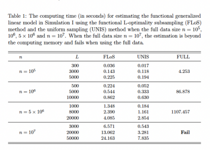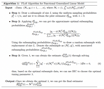 青年教师刘华博士、上海财经大学统计与管理学院教授尤进红博士和加拿大西蒙弗雷泽大学(Simon Fraser University)教授Jiguo Cao博士进行了深入的研究。他们首次把子抽样思想应用到函数型数据分析,开发出适应于函数型广义回归模型的最优抽样方法Functional L-Optimality Subsampling(FLoS),以此来实现减少计算时间、克服内存不足等问题的目标。除此之外,作者还通过理论和一系列的数值模拟来说明了该抽样方法的准确性和有效性。