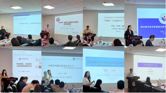 山东师范大学李玉洁同学报告的题目是《城市数字经济发展能否提升双向FDI协调发展水平》,详细探讨了城市数字经济改革影响外商直接投资的中介机制,学校金禾经济研究中心的陈晓东副教授进行了点评。中央财经大学颜静雯博士报告的题目是《税收损益、议价能力与家庭税收筹划行为》,借助2019年个税改革展开了中国家庭税收筹划的研究,学院程茂勇教授进行了点评。西安交通大学高强博士报告的题目是《中欧班列能否促进企业分工?——基于中国制造业企业的分析》,实证估计了开通中国内陆城市到欧洲国家的货运班列对中国制造业企业分工行为的影响和潜在机制,学院冯晨助理教授代西北大学石阳副教授进行了点评。上海立信会计金融学院朱颖博士报告的题目是《绿色低碳目标下财政政策对就业的影响——来自“节能减排财政政策综合示范城市”的证据》,构造双重差分模型实证估计了“示范城市”政策影响企业的职工就业以及其他财务状况的因果效应,罗添元副教授进行了点评。西安交通大学李晓光博士报告的题目是《高学历者的教育失配与工作转换——基于在线职位招聘和简历投递实验的新证》,通过在招聘网站上发布虚拟简历的方式进行随机试验,深入研究了中国高学历求职者的教育失配问题,学院张昭副教授进行了点评。