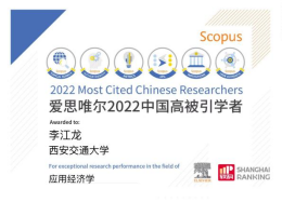 李江龙教授再次入选应用经济学领域中国高被引学者。