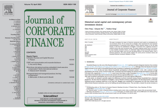 学院青年教师冯晨博士以第一作者署名与山东大学、中央财经大学等学者合作完成的论文从社会资本理论视角给出重要的理论解释。研究发现,晚清“商会”这一商业组织的建设深刻影响了我国家庭的长期投资活动,且此影响主要可由商会建设下的本地金融可得性提升、私人投资者金融素养的增加以及家庭对金融市场的信任水平与冒险倾向的上升给予有力解释。近日,上述成果以“Historical Social Capital and Contemporary Private Investment Choices”为题正式发表于公司金融领域国际高水平期刊Journal of Corporate Finance上。赌博平台-线上赌博平台-正规赌博平台