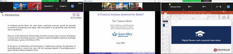 副院长温军教授主持,院长孙早教授致开幕词,莫纳什大学Paresh Narayan教授、伦敦玛丽女王大学Sushanta Mallick教授、北京大学王勇教授、西安交通大学杨秀云教授分别做了题目为“COVID-19 Research Outcomes: An Agenda for Future Research”、“Is Financial Inclusion beneficial for Banks?”、“Endowment Structure and Role of State in Industrialization and Reforms”、“Opportunities and Challenges for the Development in the Era of Digital Economy”的主题报告。