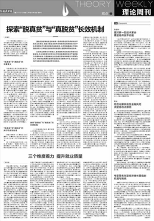 十九大报告提出,确保到二〇二〇年我国现行标准下农村贫困人口实现脱贫,贫困县全部摘帽,解决区域性整体贫困,做到脱真贫、真脱贫。“脱真贫”与“真脱贫”的论述既包含了党对基本生存条件无法满足的绝对贫困人口脱贫的决心,也体现了缩小收入差距,让相对贫困人口脱贫,全体人民共享发展成果,建设美丽中国的雄心壮志。